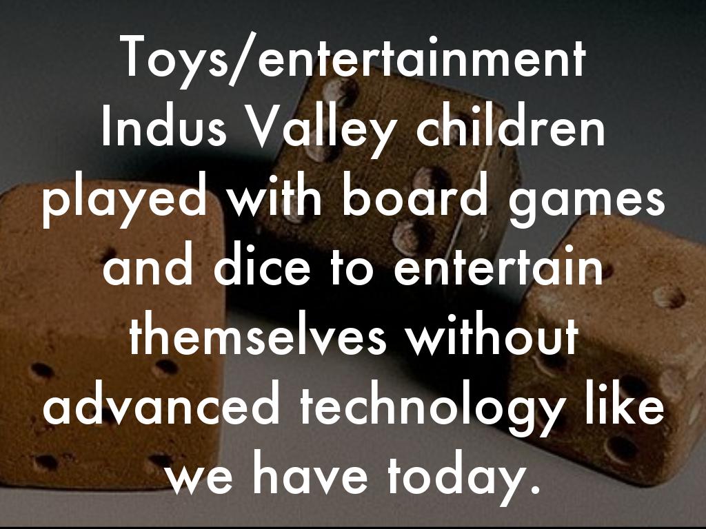 Indus Valley children played with board games and dice to entertain themselves without advanced technology like we have today.