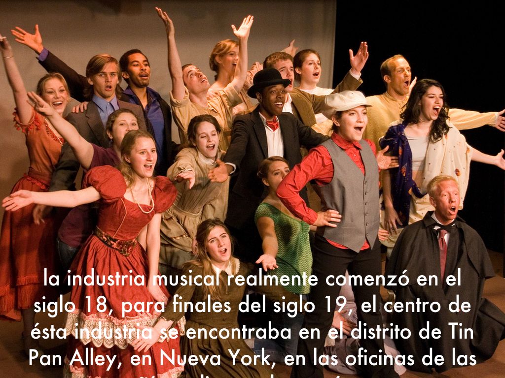 la industria musical realmente comenzó en el siglo 18, para finales del siglo 19, el centro de ésta industria se encontraba en el distrito de Tin Pan Alley, en Nueva York, en las oficinas de las compañías editoras de esa época que agrupaban a los compositores que producían música en papel para el consumo de sus clientes, mayoritariamente músicos.
