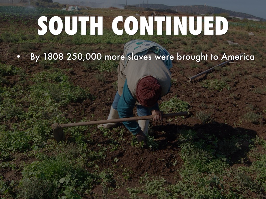 Slavery also grew in the south because the larger land needed to be cultivated more rapidly