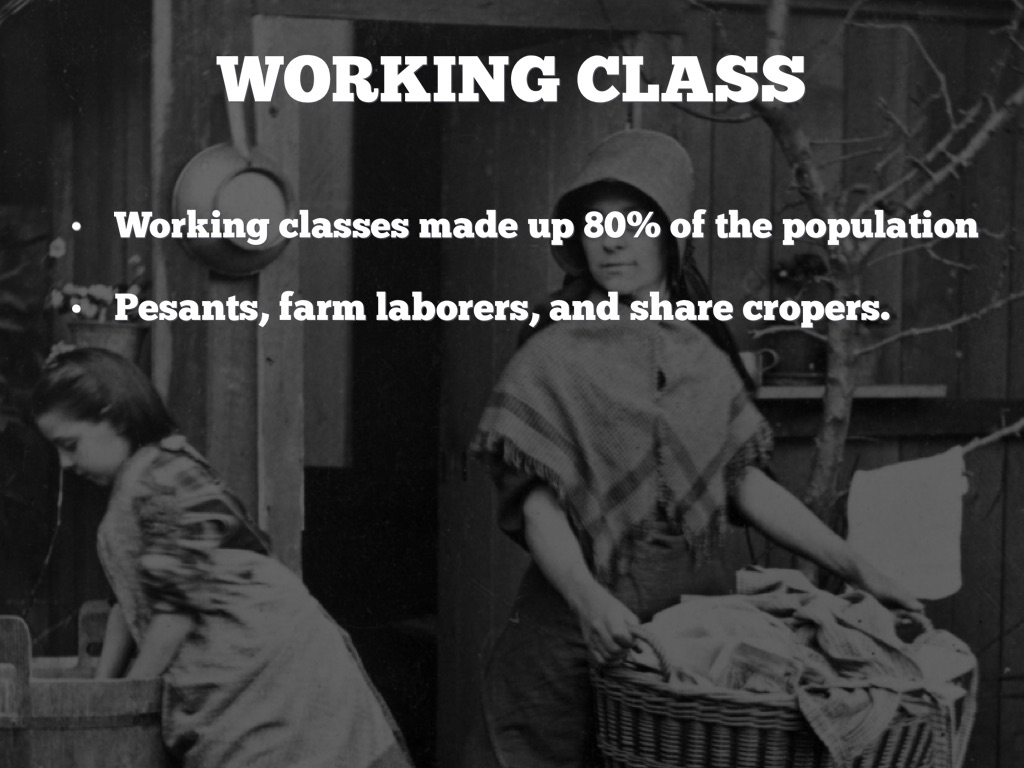 Working classes made up 80% of the population