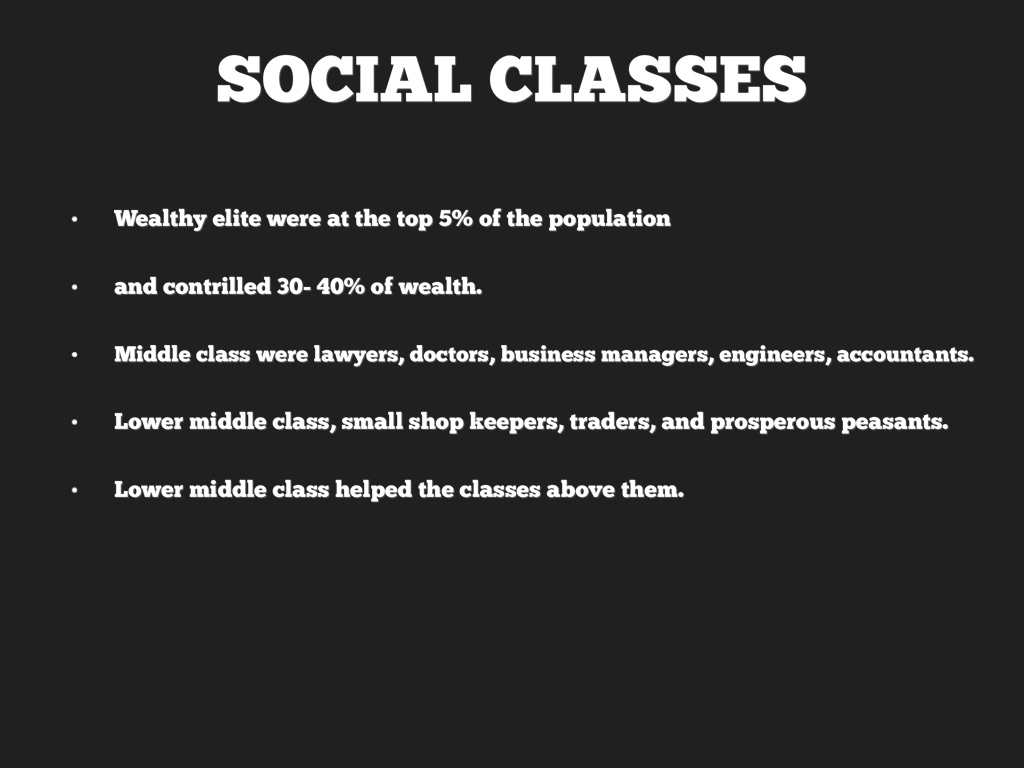 Middle class were lawyers, doctors, business managers, engineers, accountants.