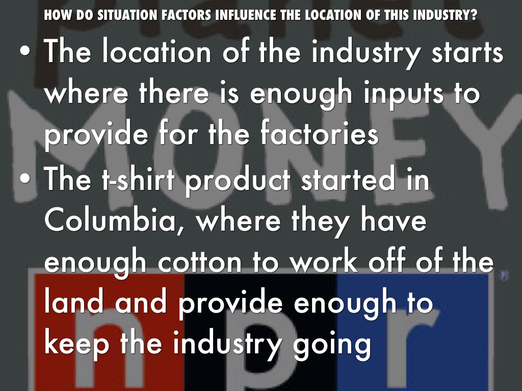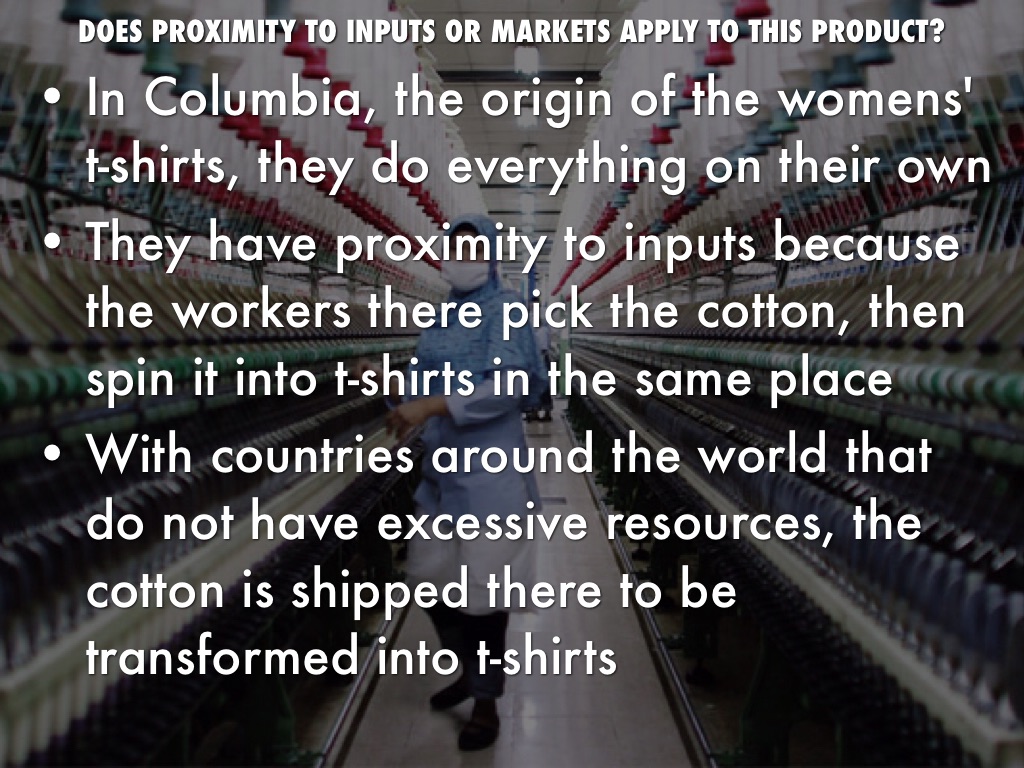They have proximity to inputs because the workers there pick the cotton, then spin it into t-shirts in the same place