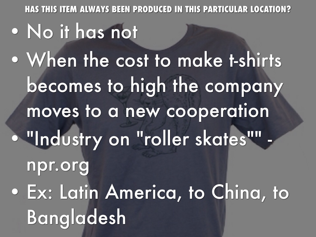 When the cost to make t-shirts becomes to high the company moves to a new cooperation
