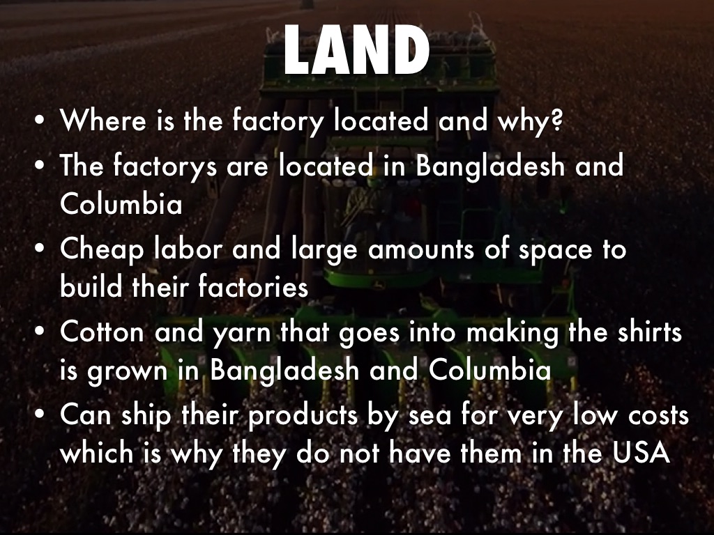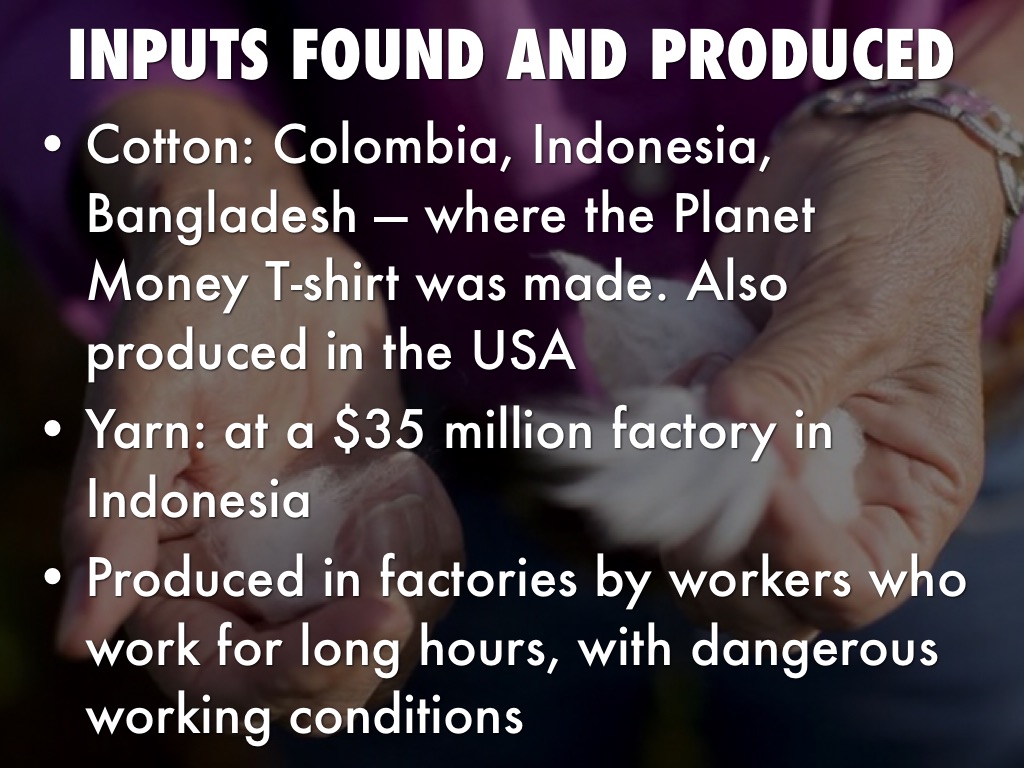 Cotton and yarn that goes into making the shirts is grown in Bangladesh and Columbia