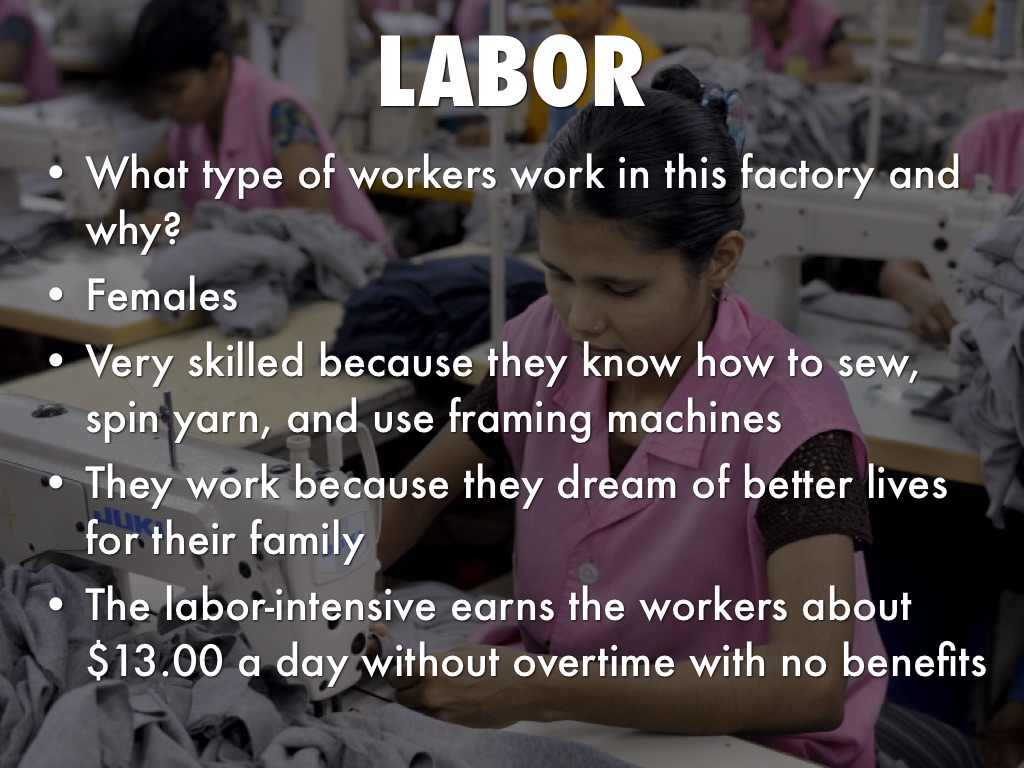 The labor-intensive earns the workers about $13.00 a day without overtime with no benefits