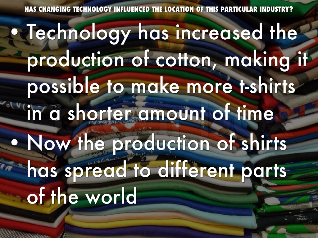 Technology has increased the production of cotton, making it possible to make more t-shirts in a shorter amount of time