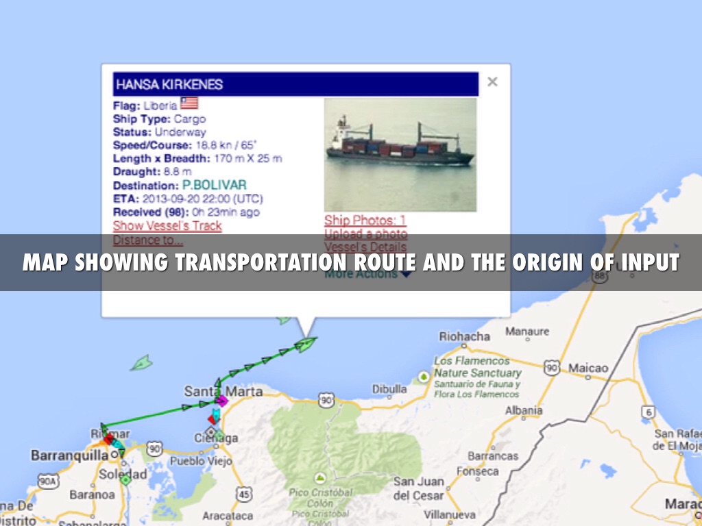 MAP SHOWING TRANSPORTATION ROUTE AND THE ORIGIN OF INPUT