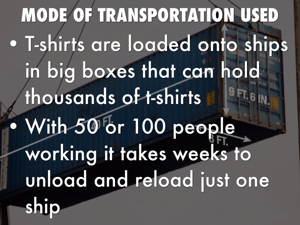 T-shirts are loaded onto ships in big boxes that can hold thousands of t-shirts