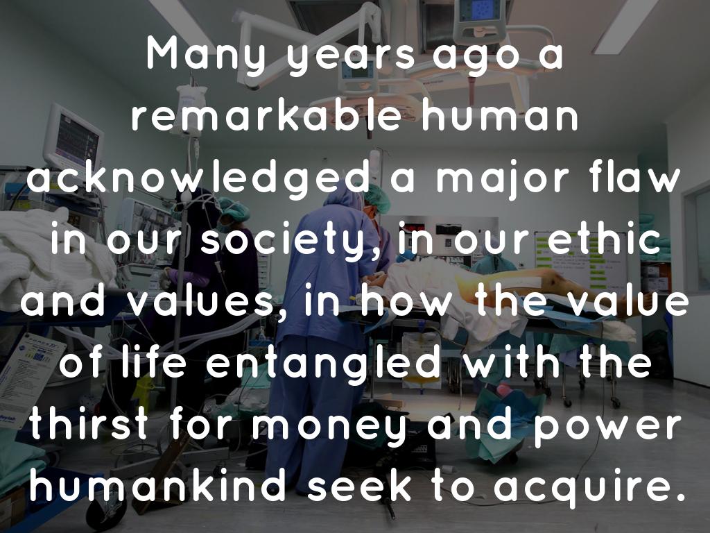 Many years ago a remarkable human acknowledged a major flaw in our society, in our ethic and values, in how the value of life entangled with the thirst for money and power humankind seek to acquire.