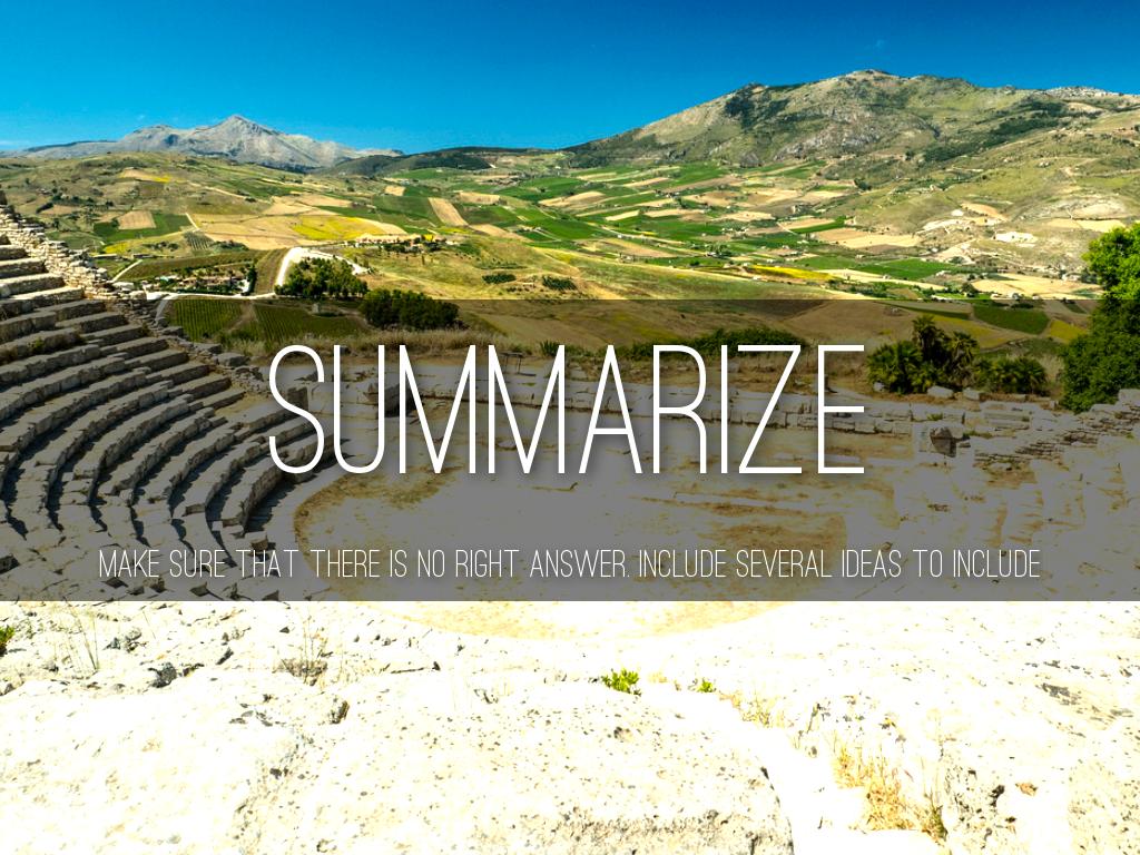 MAKE SURE THAT THERE IS NO RIGHT ANSWER. INCLUDE SEVERAL IDEAS TO INCLUDE