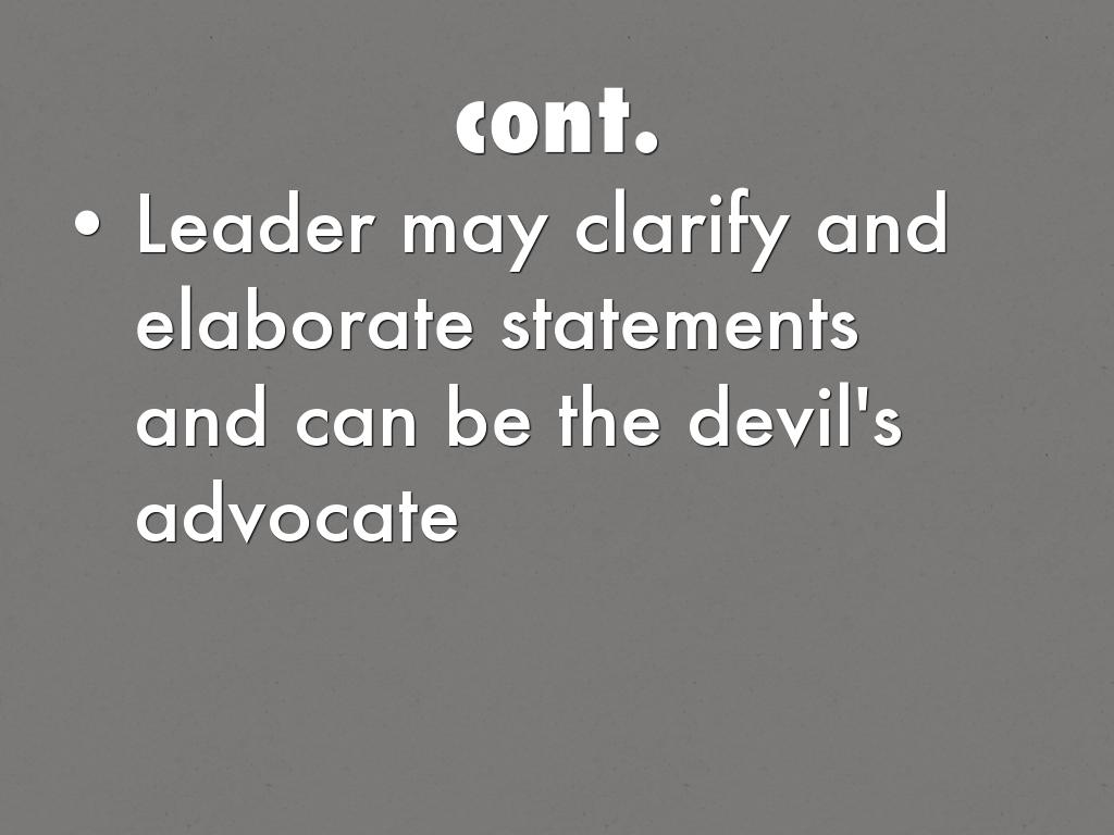 Leader may clarify and elaborate statements and can be the devil's advocate
