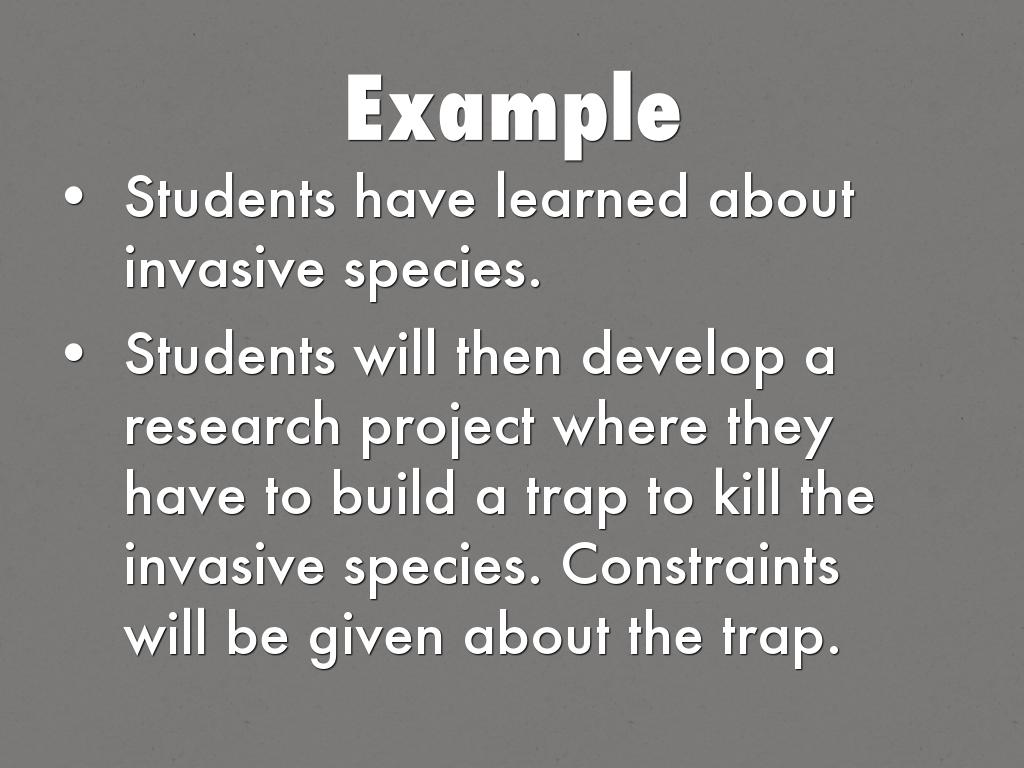 Students will then develop a research project where they have to build a trap to kill the invasive species. Constraints will be given about the trap.