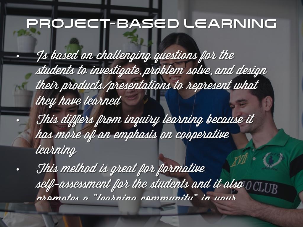 • This differs from inquiry learning because it has more of an emphasis on cooperative learning