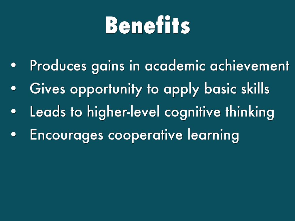 - Encourages cooperative learning