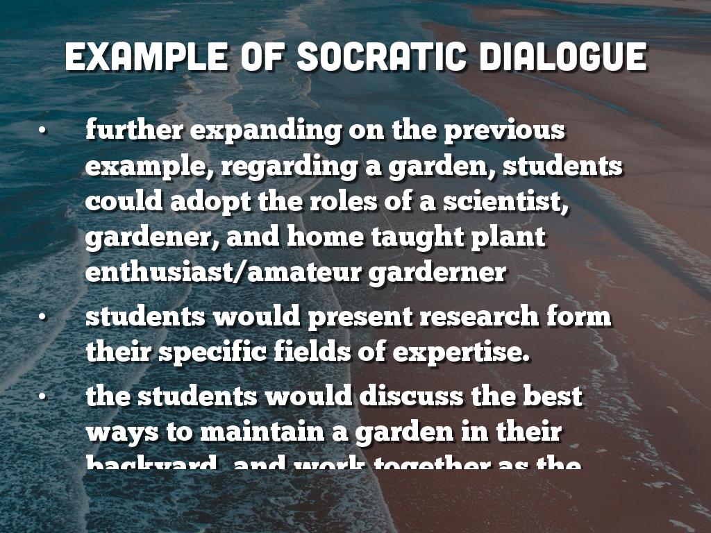 further expanding on the previous example, regarding a garden, students could adopt the roles of a scientist, gardener, and home taught plant enthusiast/amateur garderner