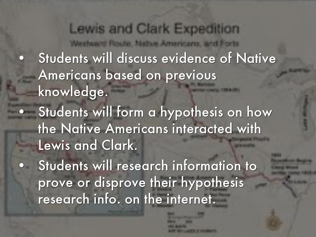 - Students will form a hypothesis on how the Native Americans interacted with Lewis and Clark.