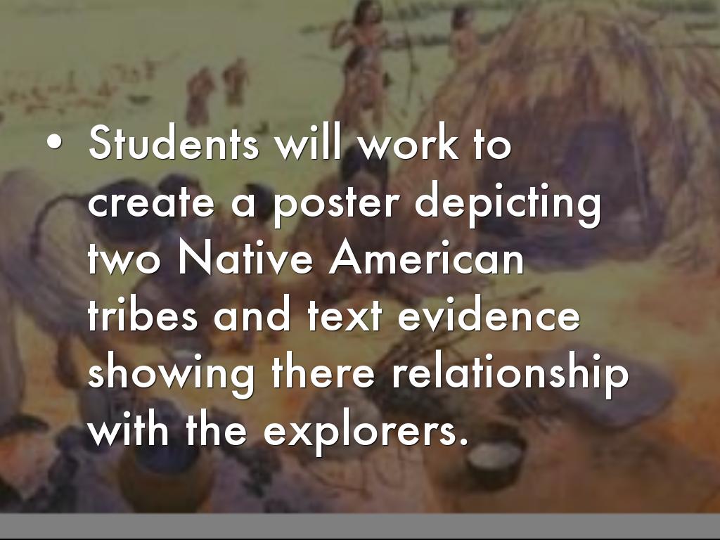 - Students will work to create a poster depicting two Native American tribes and text evidence showing there relationship with the explorers.