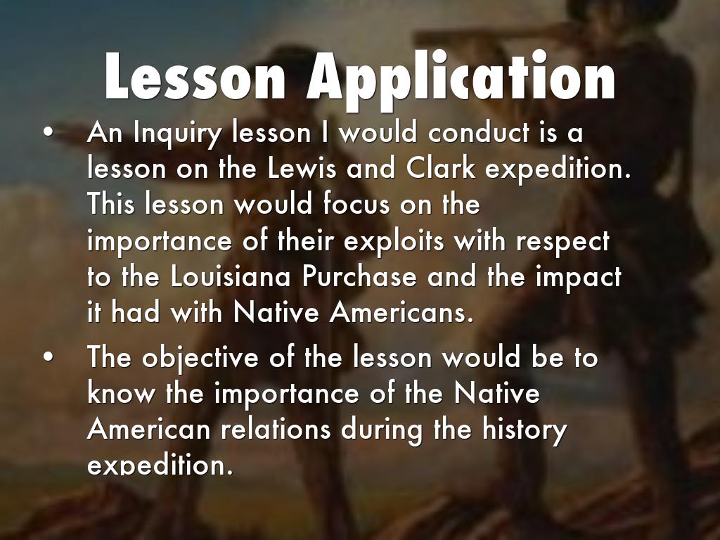 - An Inquiry lesson I would conduct is a lesson on the Lewis and Clark expedition. This lesson would focus on the importance of their exploits with respect to the Louisiana Purchase and the impact it had with Native Americans.