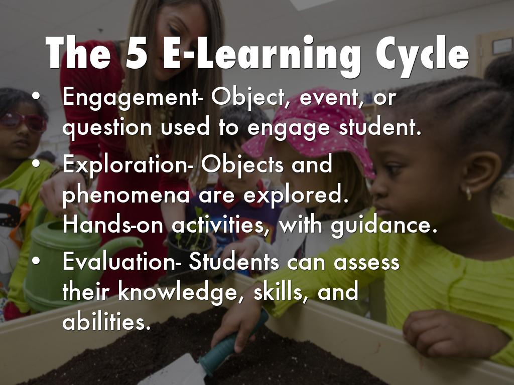 - Exploration- Objects and phenomena are explored. Hands-on activities, with guidance.