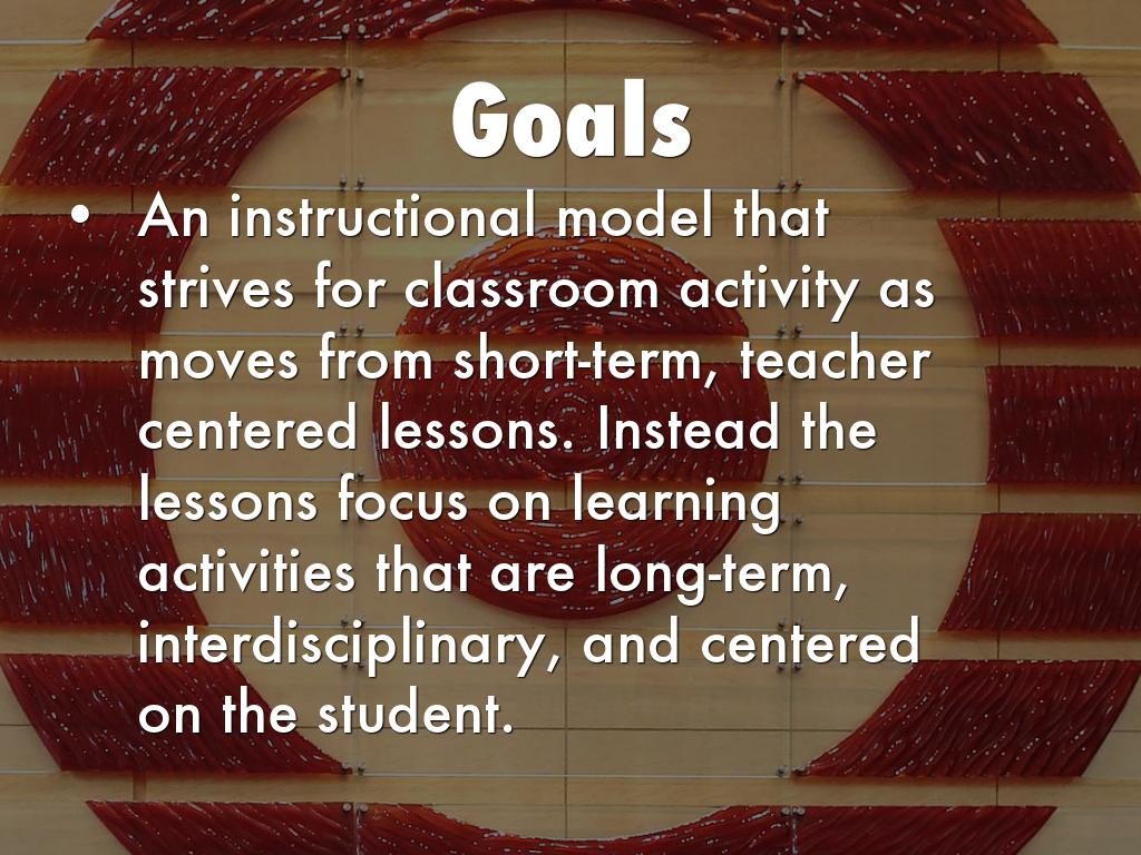 - An instructional model that strives for classroom activity as moves from short-term, teacher centered lessons. Instead the lessons focus on learning activities that are long-term, interdisciplinary, and centered on the student.