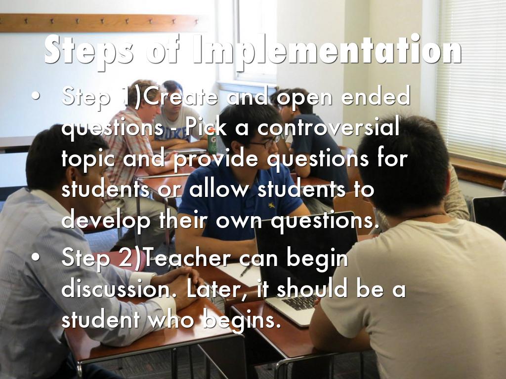 - Step 1)Create and open ended questions - Pick a controversial topic and provide questions for students or allow students to develop their own questions.