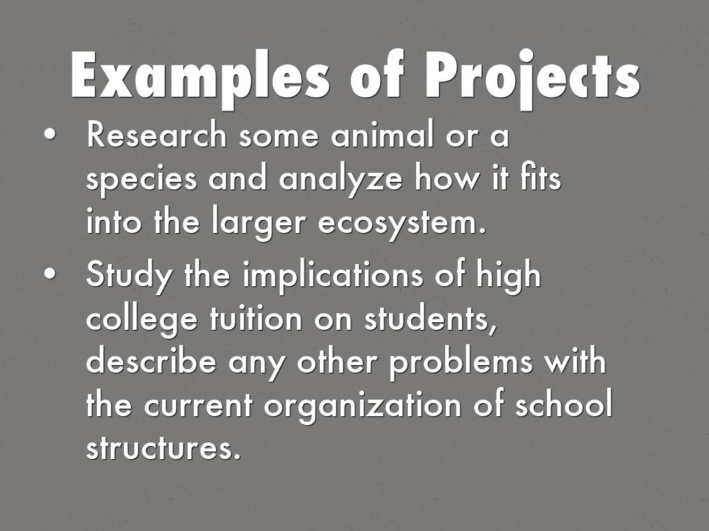 • Study the implications of high college tuition on students, describe any other problems with the current organization of school structures.