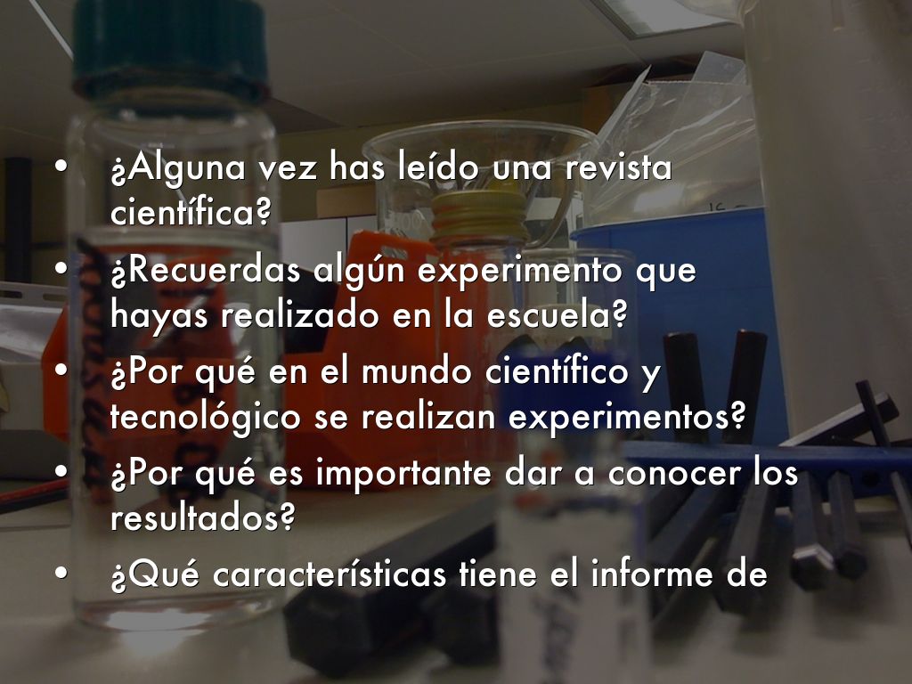 Para la materia de Español en 3º de Secundaria, Proyecto 8, desarrollo de un informe de experimento científico. Utilizar correctamente el idioma para expresar los resultados de un experimento.