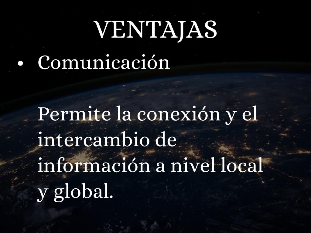 • Comunicación Permite la conexión y el intercambio de información a nivel local y global.
