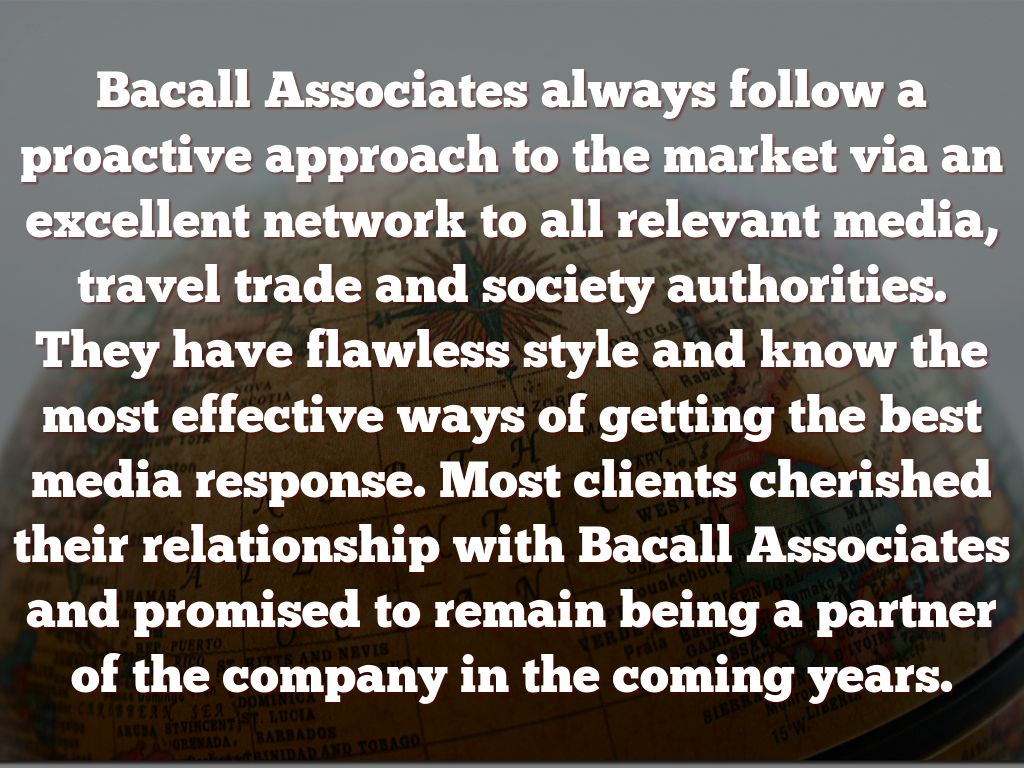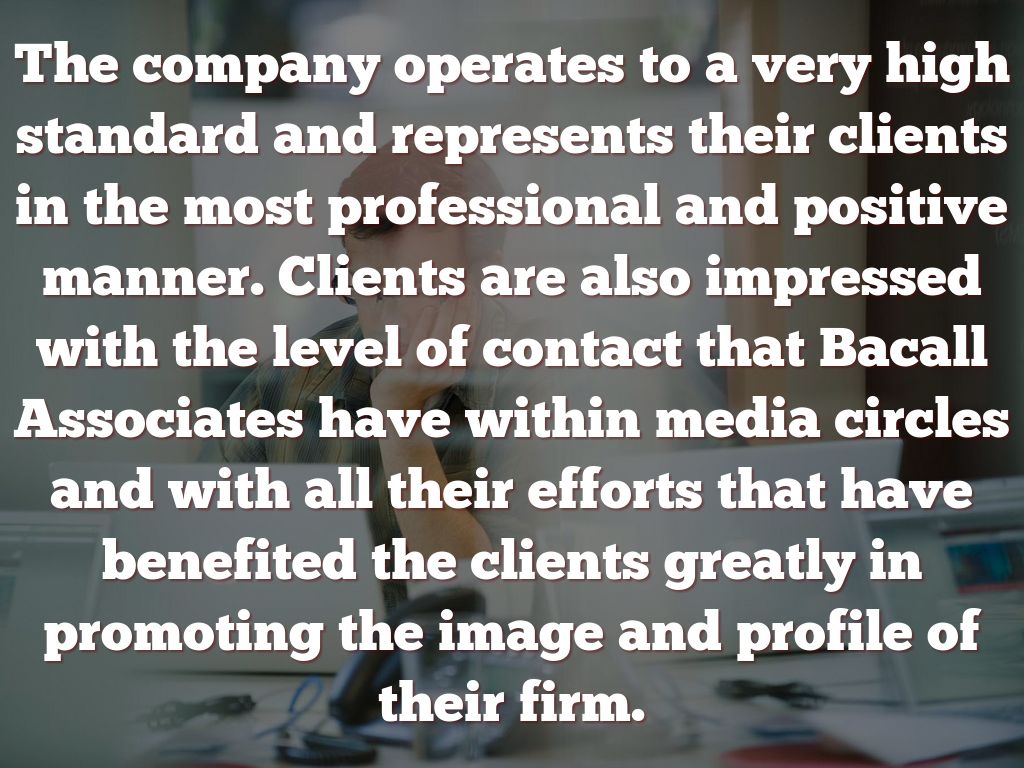 Wonder why a lot of clients had the pleasure and privilege of working with Bacall Associates? It’s because the company has been one of the most professional public relations companies around the world for several years and their shining reputation in the industry is one of a kind.