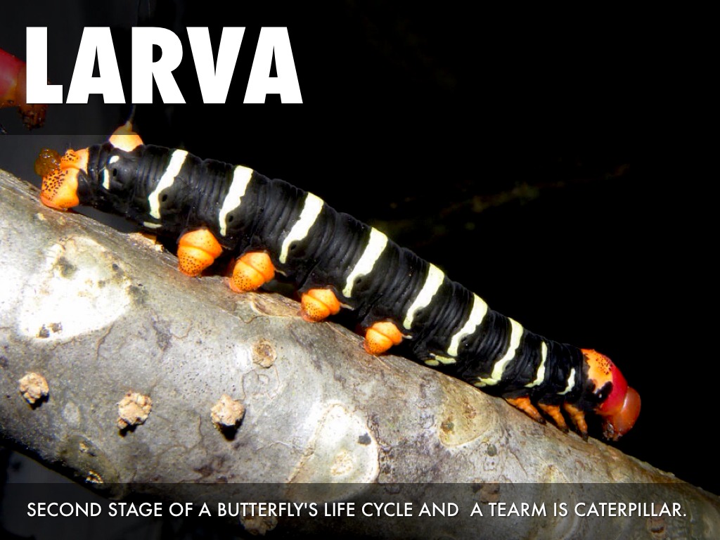 SECOND STAGE OF A BUTTERFLY'S LIFE CYCLE AND A TEARM IS CATERPILLAR.