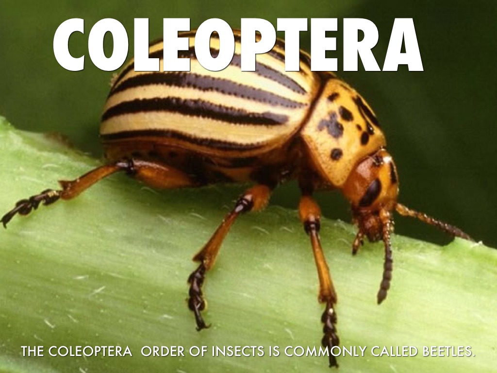 THE COLEOPTERA ORDER OF INSECTS IS COMMONLY CALLED BEETLES.