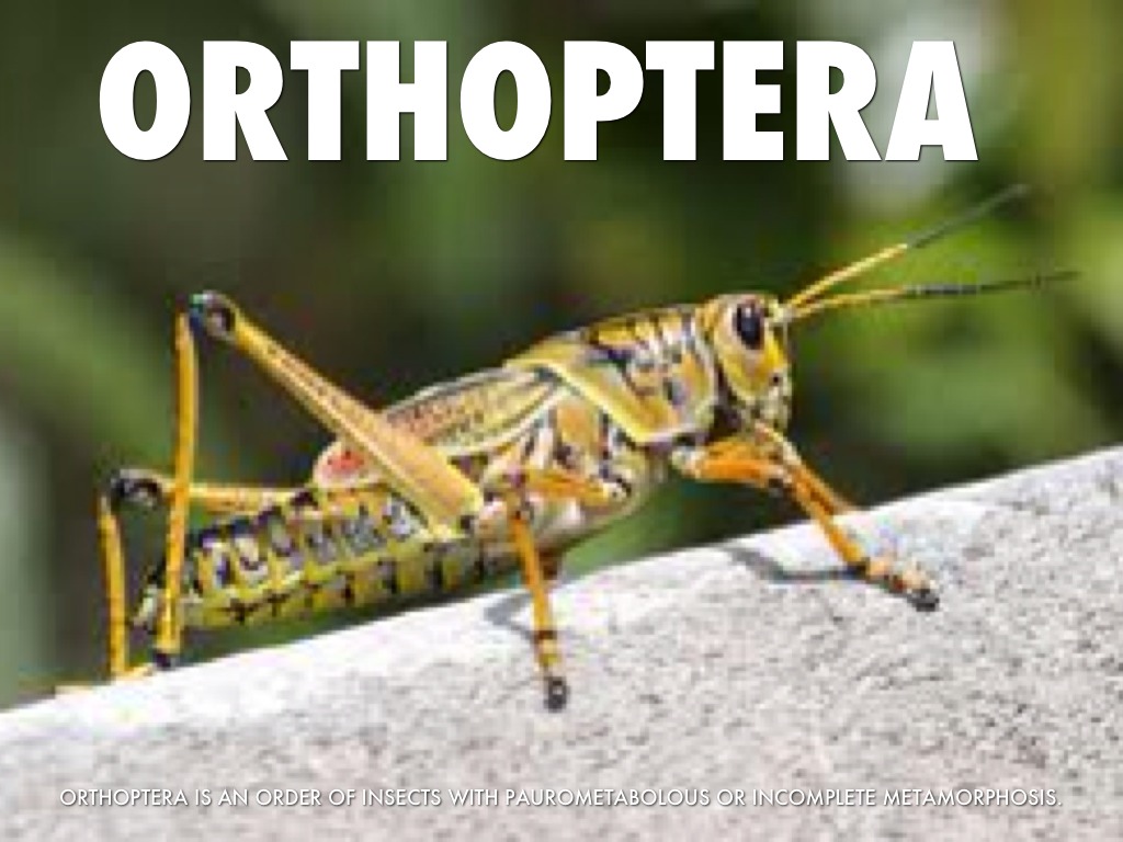 Orthoptera is an order of insects with paurometabolous or incomplete metamorphosis.
