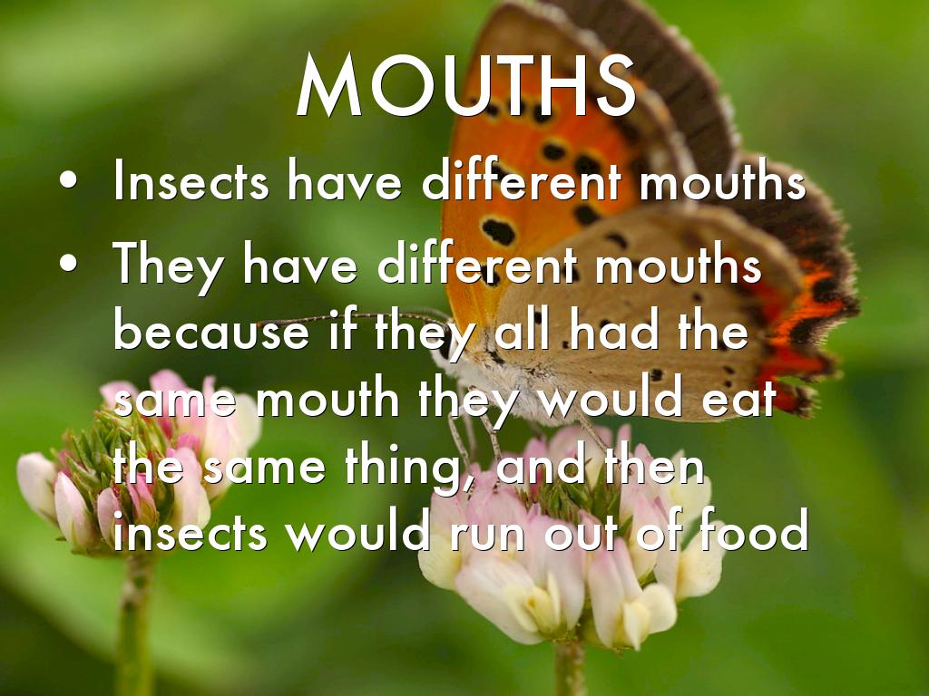 They have different mouths because if they all had the same mouth they would eat the same thing, and then insects would run out of food