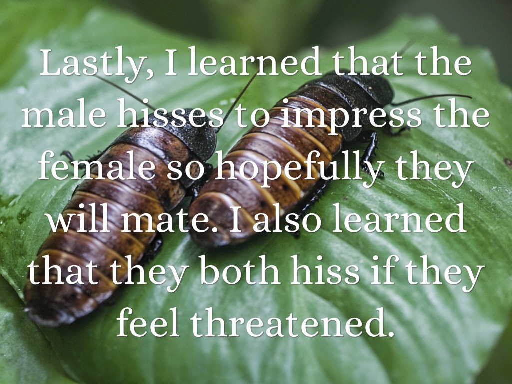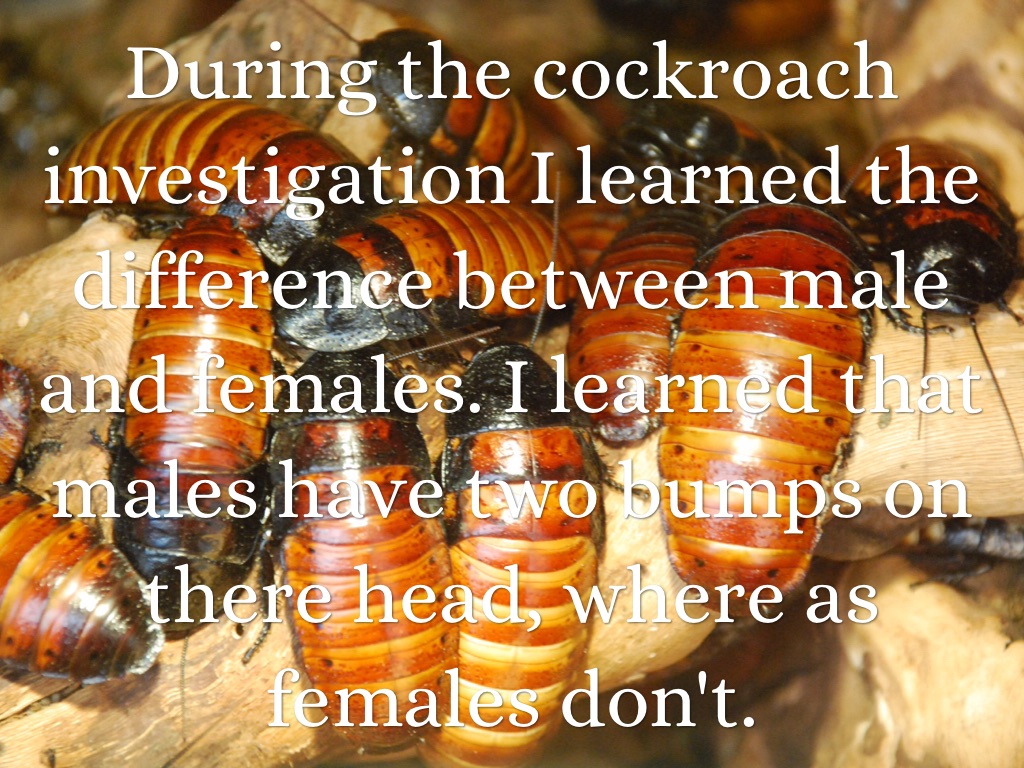 During the cockroach investigation I learned the difference between male and females. I learned that males have two bumps on there head, where as females don't.
