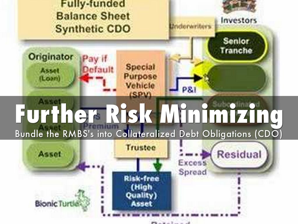 Bundle the RMBS's into Collateralized Debt Obligations (CDO)