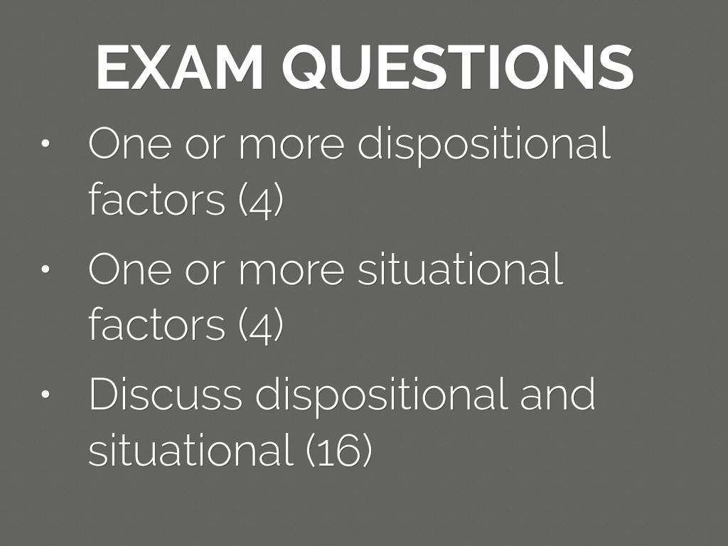 - Discuss dispositional and situational (16)
