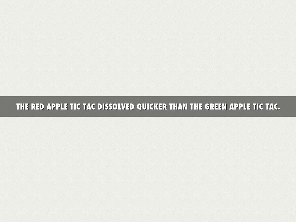 THE RED APPLE TIC TAC DISSOLVED QUICKER THAN THE GREEN APPLE TIC TAC.