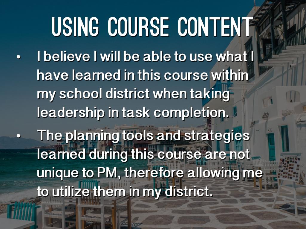 Overall, I did not expect to carry many strategies from the course back to my current occupation.