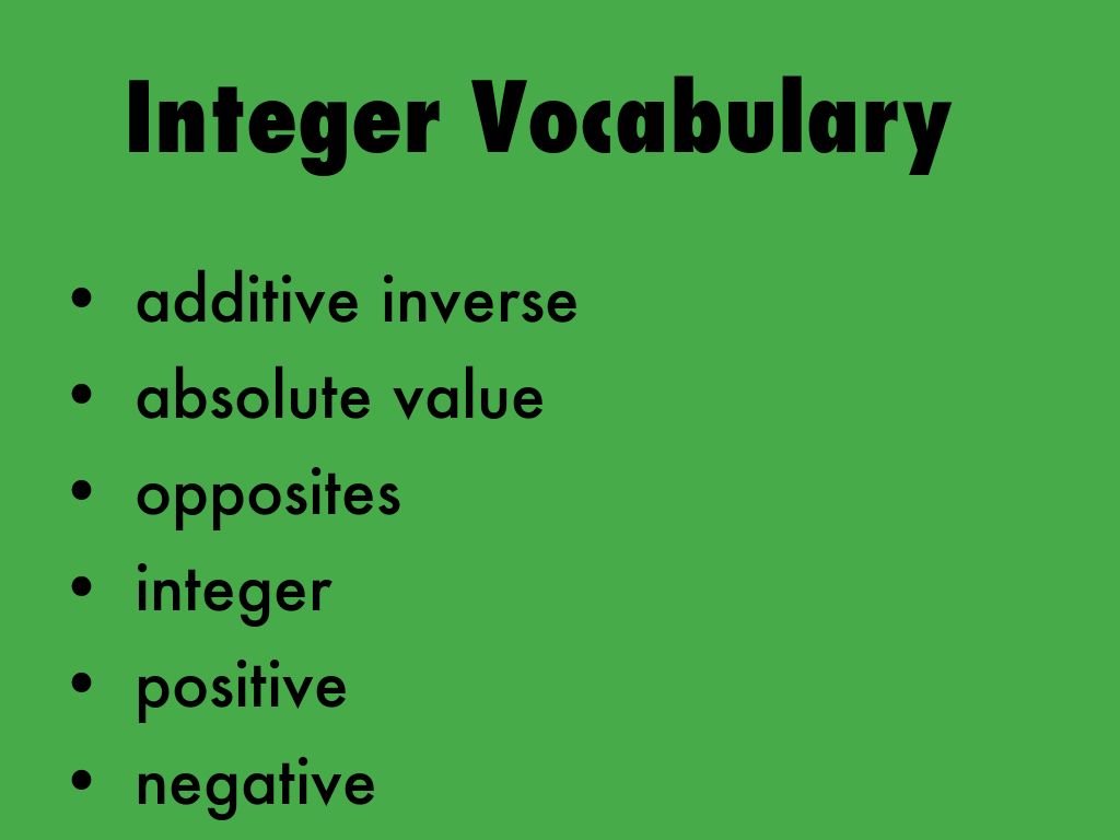 Integers Vocabulary