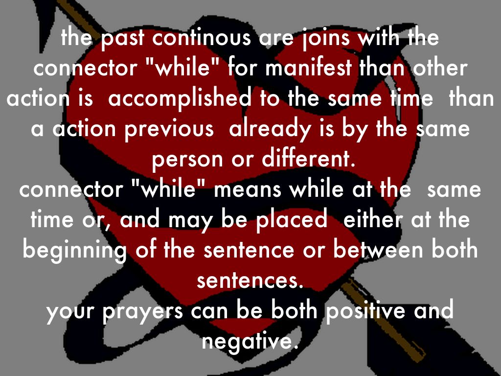 the past continous are joins with the connector "while" for manifest than other action is accomplished to the same time than a action previous already is by the same person or different.
