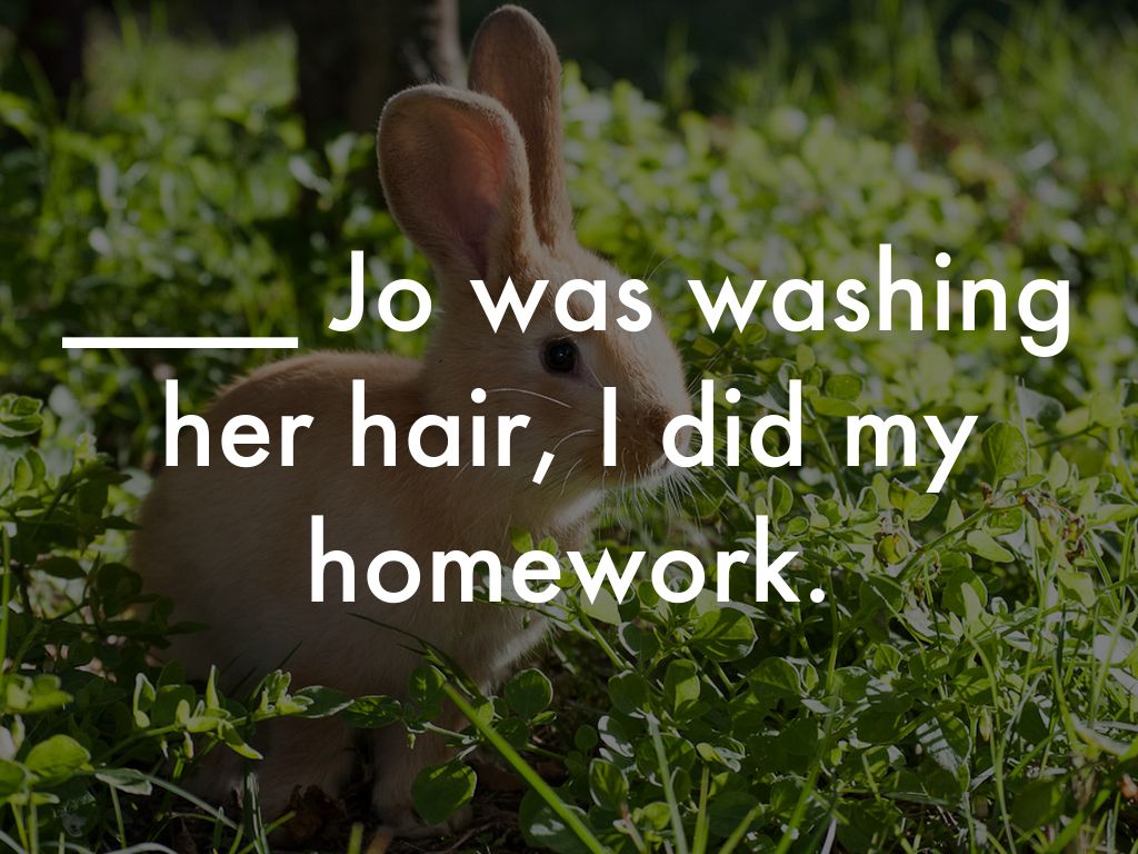 el conector "while" significa mientras o al mismo tiempo que, y puede ir colocado ya sea al inicio de la oración o en medio de ambas oraciones .