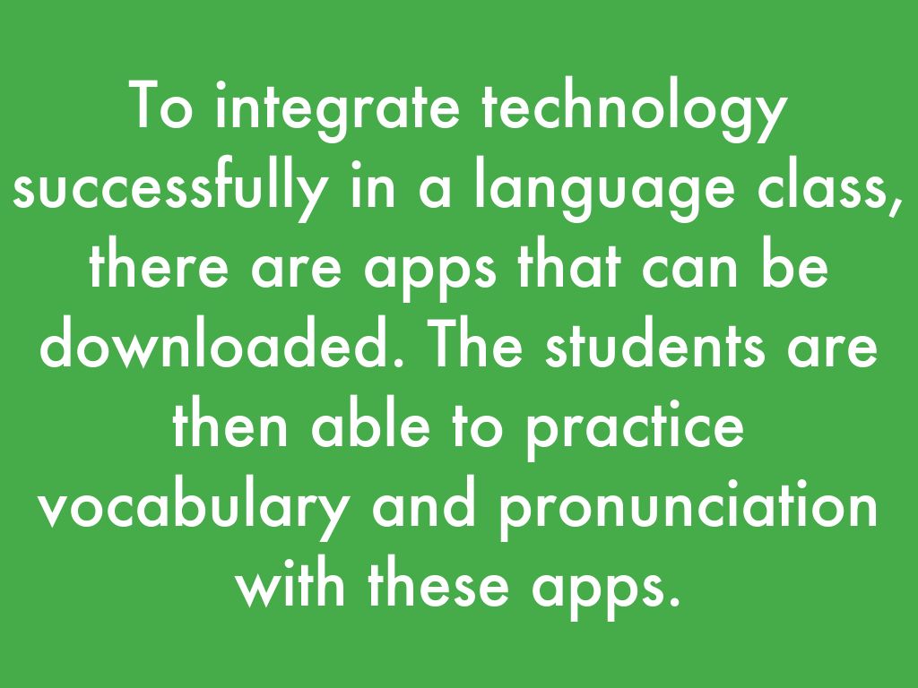 To integrate technology successfully in a language class, there are apps that can be downloaded. The students are then able to practice vocabulary and pronunciation with these apps.