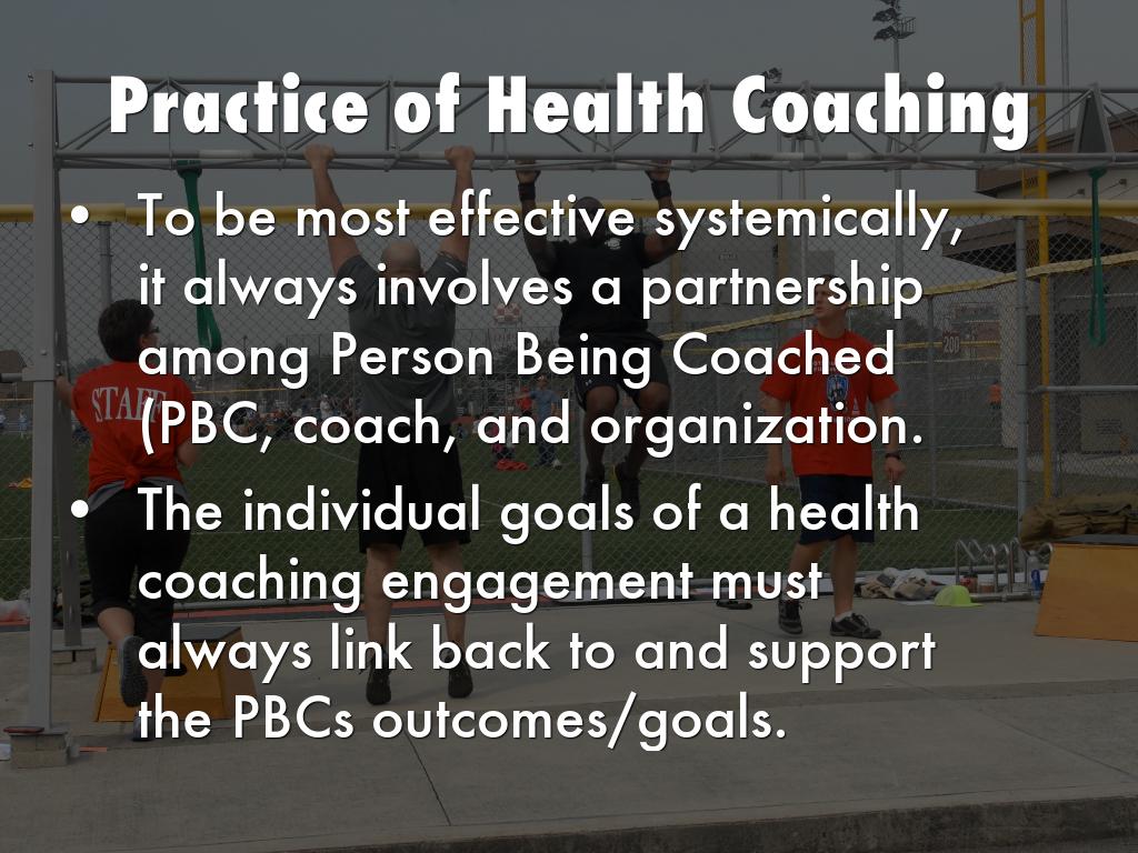 The individual goals of a health coaching engagement must always link back to and support the PBCs outcomes/goals.
