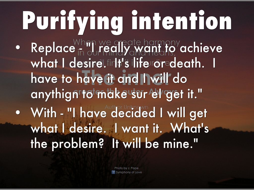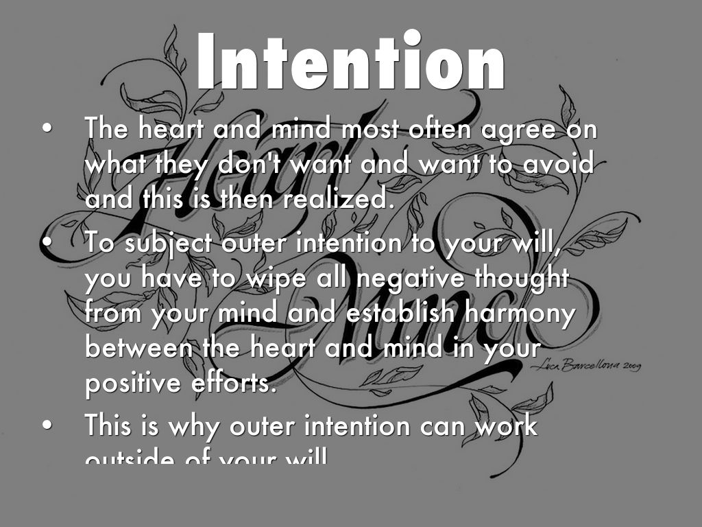 To subject outer intention to your will, you have to wipe all negative thought from your mind and establish harmony between the heart and mind in your positive efforts.