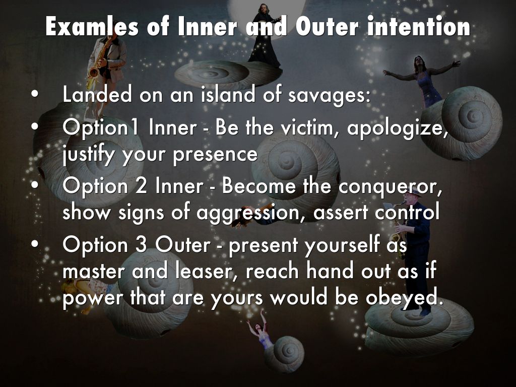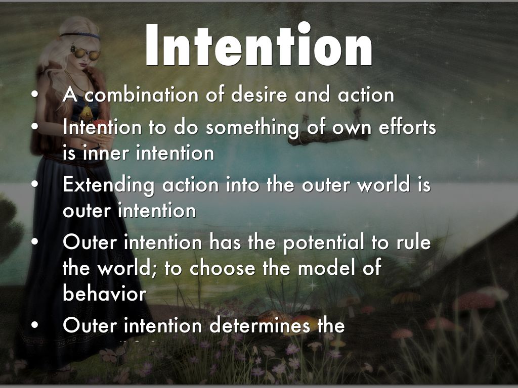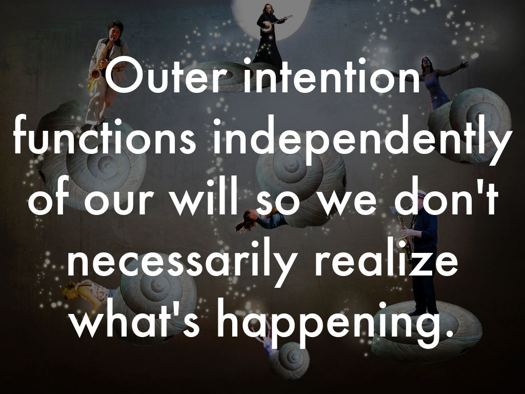 Outer intention allows the goal to realize itself. It presupposes the firm belief that the alternative of the goal's realization already exists and only remains to be chosen.