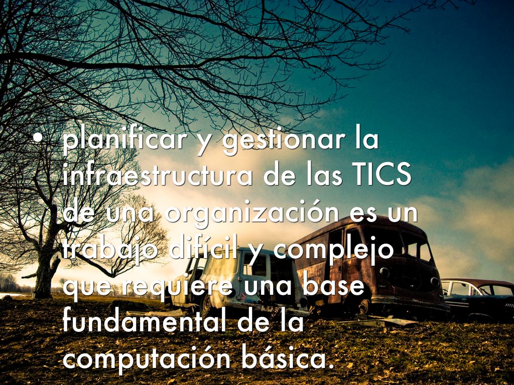planificar y gestionar la infraestructura de las TICS de una organización es un trabajo difícil y complejo que requiere una base fundamental de la computación básica.