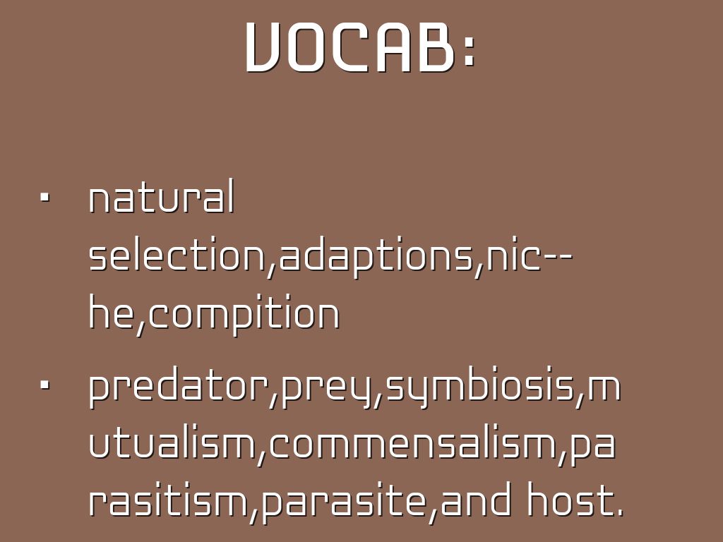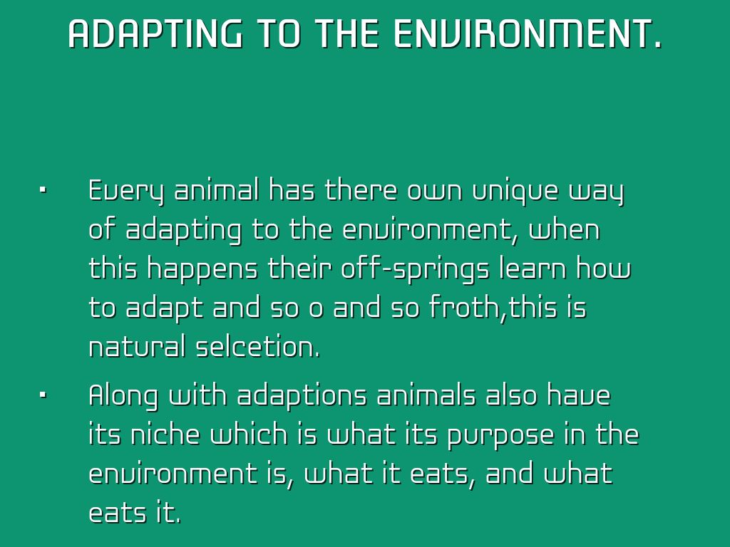 Every animal has there own unique way of adapting to the environment, when this happens their off-springs learn how to adapt and so o and so froth,this is natural selcetion.