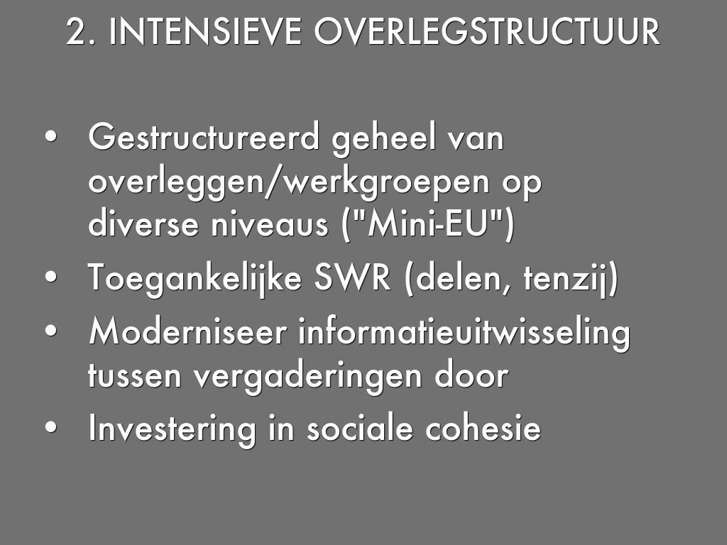 Gestructureerd geheel van overleggen/werkgroepen op diverse niveaus ("Mini-EU")