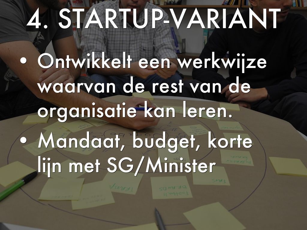 Ontwikkelt een werkwijze waarvan de rest van de organisatie kan leren.