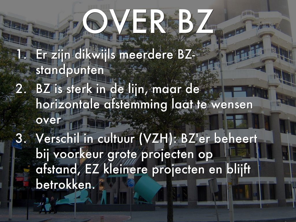 Verschil in cultuur (VZH): BZ'er beheert bij voorkeur grote projecten op afstand, EZ kleinere projecten en blijft betrokken.